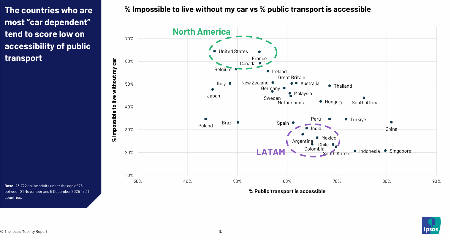 Il Mobility Monitor di Ipsos, attraverso un sondaggio su oltre 23.700 persone in 31 Paesi inclusa l’Italia, ci racconta proprio questo. Innanzitutto, c’è il paradosso dell’auto: mentre il 43% afferma che non potrebbe vivere senza la propria auto (65% negli Stati Uniti), il 46% sceglierebbe il trasporto pubblico al posto dell’auto privata per ragioni ambientali. I giovani e chi vive nelle aree urbane sono più aperti alle alternative, indicando un futuro in cui il camminare, il trasporto pubblico e le soluzioni condivise avranno un ruolo sempre più rilevante.