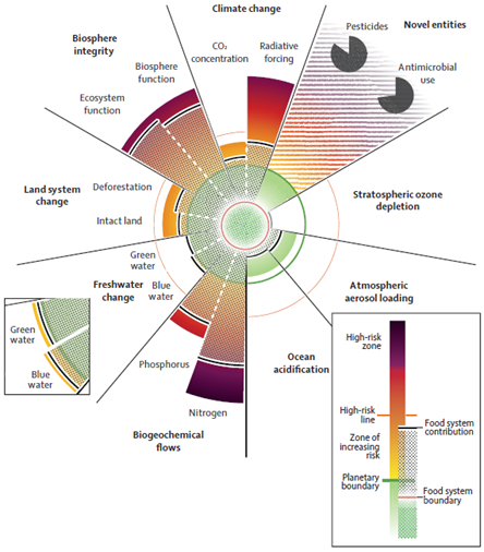 Fig. 1 Pressione del sistema alimentare sui 9 confini planetari