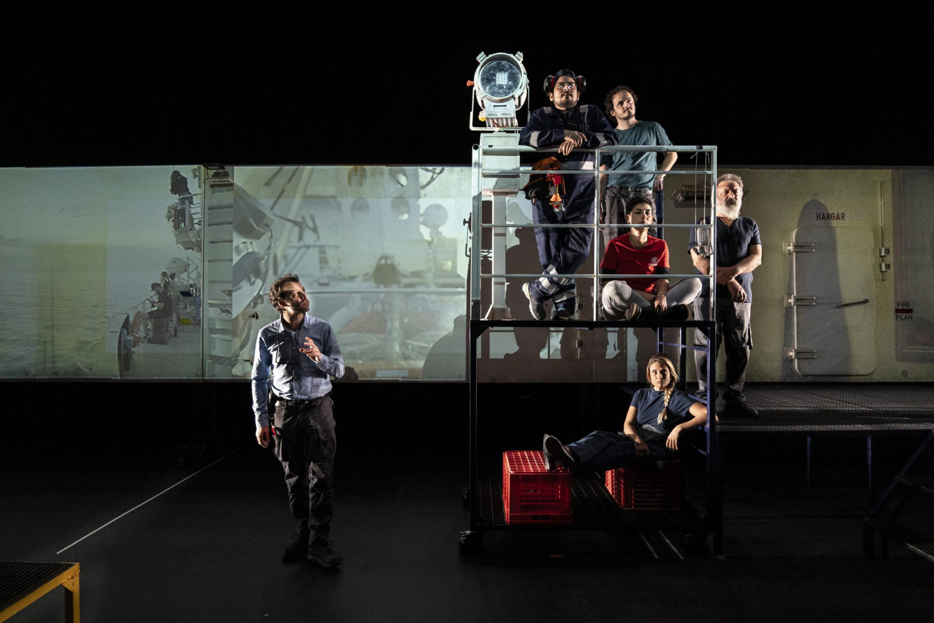 Con “A place of safety”, Kepler-452 utilizza lo stesso approccio per raccontare cos’è oggi il Mediterraneo. Il progetto nasce dal dialogo con le Ong impegnate nel soccorso in mare, come Sea-Watch ed Emergency, e dalla volontà di raccontare ciò che avviene oltre i confini italiani. I due registi trascorrono cinque settimane a bordo della Sea-Watch 5, condividendo la quotidianità dell’equipaggio. “Facevamo tutto ciò che facevano gli altri - spiega Baraldi -: accoglienza dei naufraghi, logistica, ricognizioni aeree, gestione dei soccorsi. Solo vivendo queste esperienze possiamo restituirle in teatro in modo autentico”. Le testimonianze raccolte durante la missione sono potenti e spesso drammatiche. Come quella di Miguel, soccorritore, che Baraldi racconta con emozione: “Una bambina di tre anni e sua madre sono finite in acqua davanti ai miei occhi. Non siamo riusciti a salvarle. Tornato a bordo, ho cercato di distrarmi con il lavoro, ma poi sono crollato.