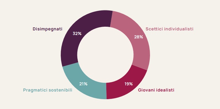 Il Rapporto distingue anche diversi profili di investitori tra i/le giovani italiani/e. Accanto agli “idealisti”, che privilegiano la coerenza valoriale e sono disposti ad accettare un rendimento inferiore pur di investire in modo sostenibile, emergono i “pragmatici sostenibili”, più attenti all’equilibrio tra etica e performance finanziaria. Seguono i “disimpegnati”, che dichiarano scarsa conoscenza o disinteresse verso la finanza in generale, e infine gli “scettici individualisti”, che non credono nell’impatto reale degli investimenti Esg.