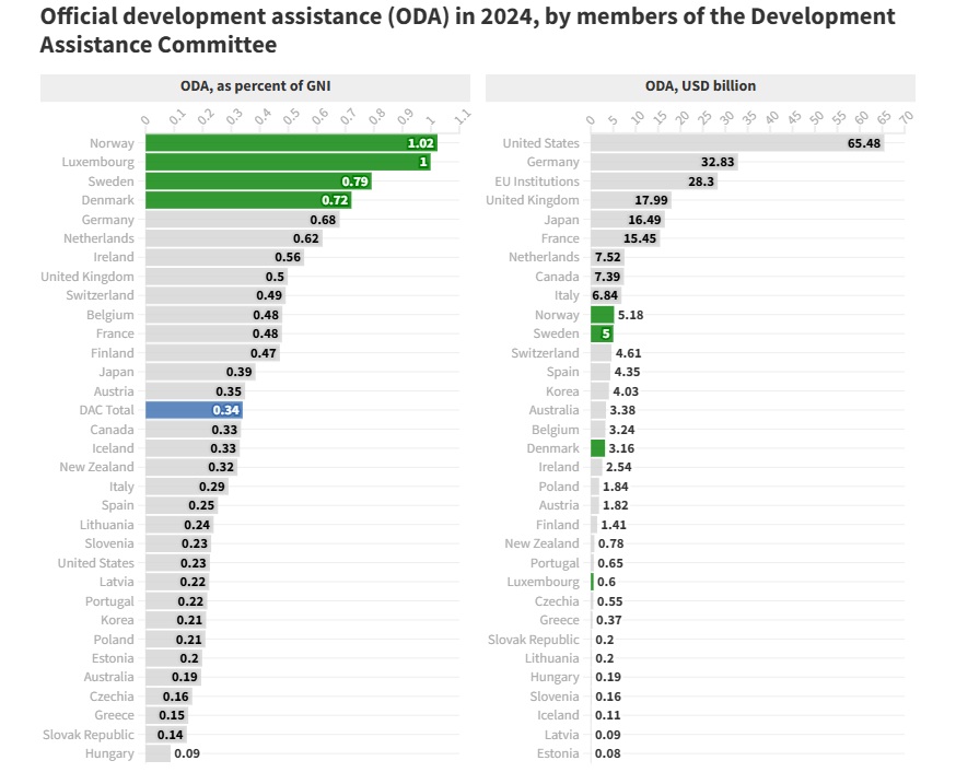 Nel 2024 l’assistenza allo sviluppo dei Paesi donatori scende a 214,5 miliardi di dollari. Solo quattro Stati superano lo 0,7% del reddito nazionale lordo. La finanza privata ha mobilitato oltre 600 miliardi.