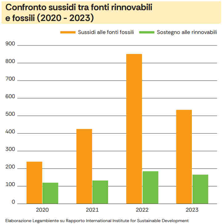 Il caso italiano si inserisce in una tendenza internazionale tutt’altro che marginale. Legambiente ricorda che l’organizzazione Earth Track stima che nel 2023 i sussidi ambientalmente dannosi nel mondo abbiano raggiunto i 2.680 miliardi di dollari, pari al 2,5% del Pil globale e in crescita di 800 miliardi in un solo anno. Il settore energetico pesa per 1.050 miliardi, seguito dall’agricoltura (610 miliardi) e dall’acqua (390 miliardi). Anche nel G20 lo squilibrio resta evidente: nel 2023 i Paesi del blocco hanno supportato con 535 miliardi di dollari le fonti fossili, contro i 168 miliardi per le rinnovabili.