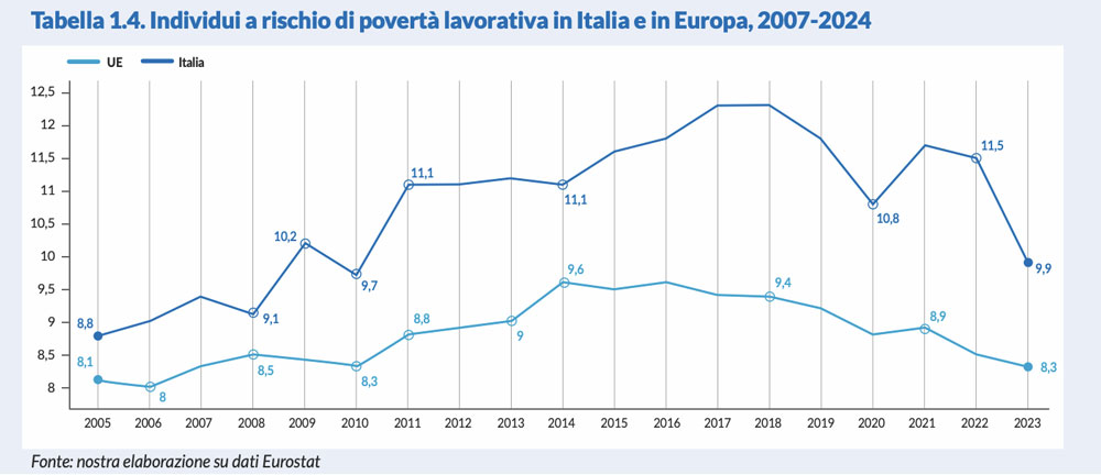 Il Rapporto evidenzia un elemento chiave: avere un lavoro non è sempre una protezione. Nelle famiglie con bassa intensità lavorativa l’incidenza della deprivazione alimentare raggiunge il 43%, mentre tra quelle con almeno un disoccupato supera il 41%. Anche il mancato accesso alle cure pesa in modo significativo: tra chi rinuncia a visite o trattamenti sanitari per motivi economici, la deprivazione alimentare è presente nel 47,1% dei casi.