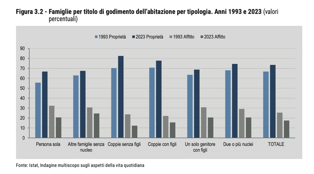 ll rapporto con la casa riflette cambiamenti più profondi nella struttura sociale. Le modalità abitative variano in base alla tipologia familiare e alla fase della vita, mostrando come l’accesso alla casa non sia uniforme ma legato a condizioni economiche e demografiche.