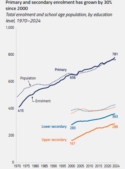 Secondo il Global education monitoring report 2026 gli studenti sono aumentati del 30%. Nel 2024 restano fuori dall’istruzione 273 milioni di giovani. Meno di un Paese su 10 dispone di finanziamenti orientati all’equità. 29/04/26