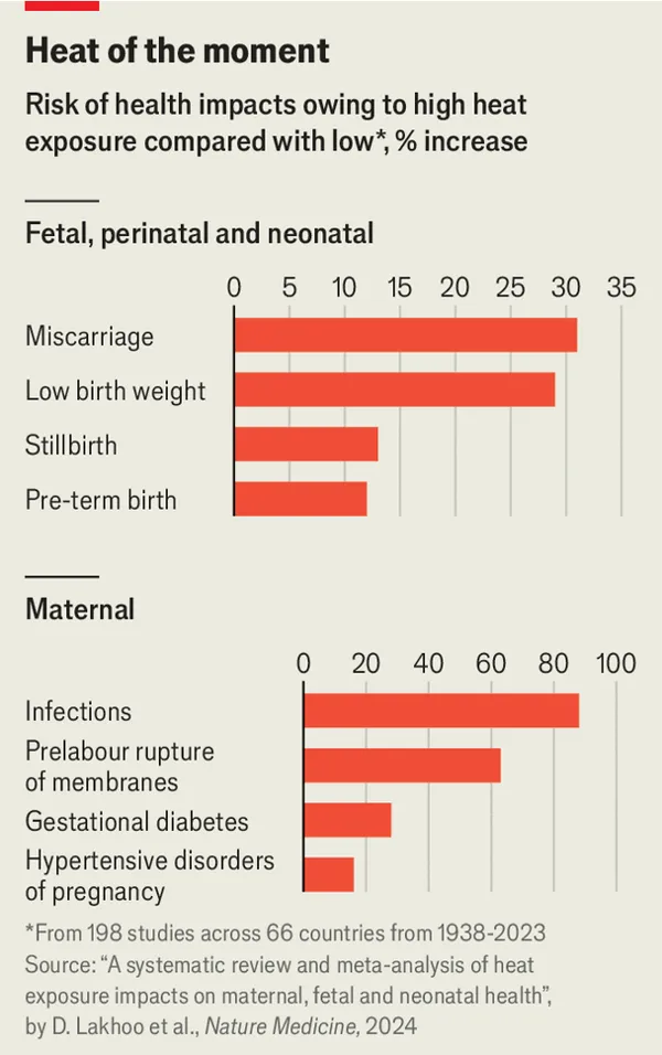 L’impatto del cambiamento climatico sulla salute delle donne incinte e dei neonati è ormai evidente e in crescita. Due approfondimenti dell’Economist, pubblicati tra agosto e settembre 2025, delineano un quadro allarmante: il caldo estremo danneggia le gravidanze in tutto il mondo, contribuendo in modo significativo all’aumento dei parti pretermine, delle morti neonatali e di complicazioni gravi per le madri.
